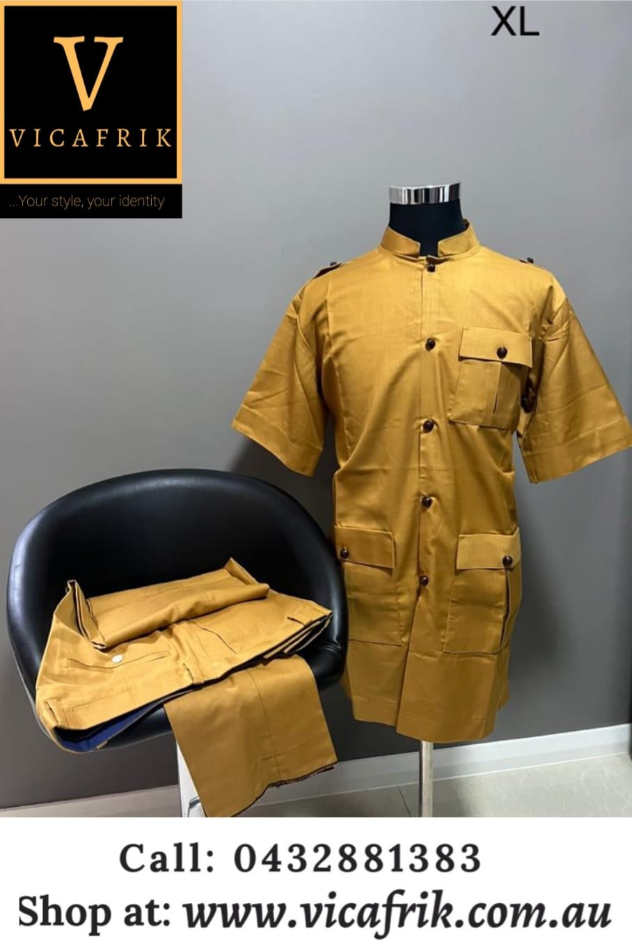 + Free ShippingGolden Brown African made Cashmere (Top & Trouser) with Pocket Design